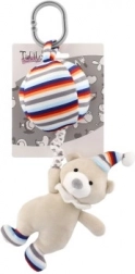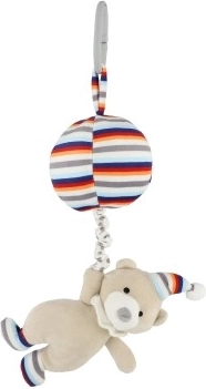 Praktyczny klips umożliwia łatwe przymocowanie zabawki do łóżeczka, wózka lub torby.