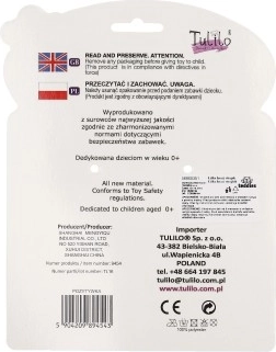 Zabawka ma 22 cm i jest odpowiednia dla dzieci od urodzenia. Dzięki łatwemu w użyciu klipsowi można ją bez trudu przymocować do łóżeczka lub wózka, co czyni ją idealnym dodatkiem w podróży.