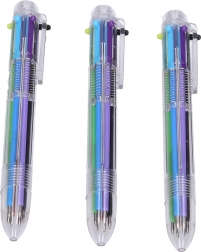 Uniwersalny długopis z przezroczystą obudową i 6 ulubionymi kolorami w jednym – czerwony, pomarańczowy, zielony, niebieski, fioletowy i czarny. Idealny do notatek, zaznaczania i kreatywnego pisania bez konieczności zmiany długopisów.