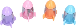 Praktyczna szkolna temperówka na jeden ołówek z wbudowanym pojemnikiem na wiórki oraz zintegrowaną gumką w kształcie statku kosmicznego. Idealna do codziennego użytku, dostępna w 4 kolorach i dostarczana po 24 sztuki w tubie. Łatwe i czyste temperowanie, kompaktowa konstrukcja i zabawny motyw dla dzieci.