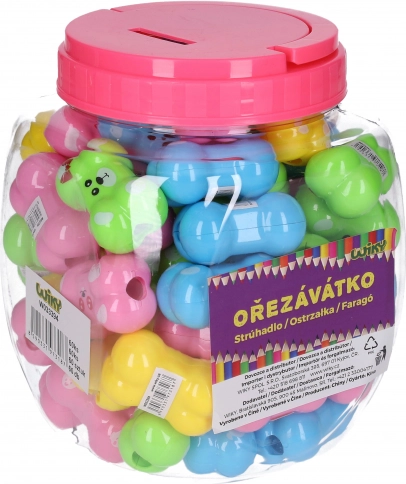 Temperówka w kształcie kości na jedną kredkę w 4 kolorach. Ostre ostrze, kompaktowy rozmiar. Idealna do szkoły i biura. Opakowanie 60 szt. w tubie.