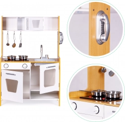 Specjalny zestaw zawiera 5 metalowych akcesoriów kuchennych, w tym garnek, patelnię, pokrywkę i 3 narzędzia kuchenne do kompletnego doświadczenia kulinarnej zabawy.