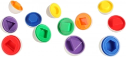 Kolorowe jajka pomagają dzieciom rozwijać koordynację oka i ręki poprzez łączenie połówek na podstawie kształtów i kolorów.