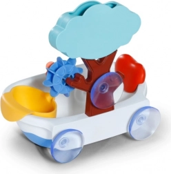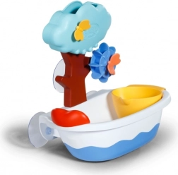 Ten wesoły zestaw do kąpieli zamieni każde mycie w zabawną wodną przygodę. Dzieci mogą nabierać wodę do kubeczka, wlewać ją do prysznica-drzewka i obserwować, jak koło wodne się rozkręca. Dzięki przyssawkom baza stabilnie trzyma się gładkiej powierzchni wanny lub płytek.