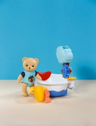- Baza z wanienką i prysznicem-drzewkiem, koło wodne, miś, kubeczek/pojemniczek na wodę