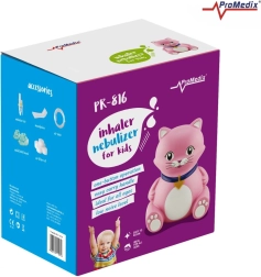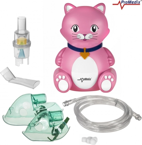 Dziecięcy inhalator PROMEDIX w kształcie kotka umila inhalacje i pomaga przy przeziębieniu, katarze oraz kaszlu. Kompresor tłokowy zapewnia niezawodną nebulizację roztworu fizjologicznego oraz leków przepisanych przez lekarza, które działają bezpośrednio na drogi oddechowe. Zaokrąglone kształty, termicznie izolowany korpus i wysokiej jakości, bezpieczne dla zdrowia tworzywa gwarantują bezpieczne użytkowanie.