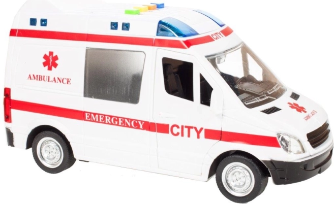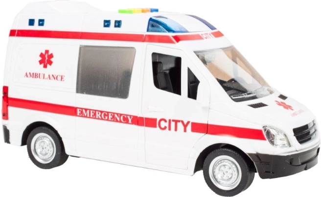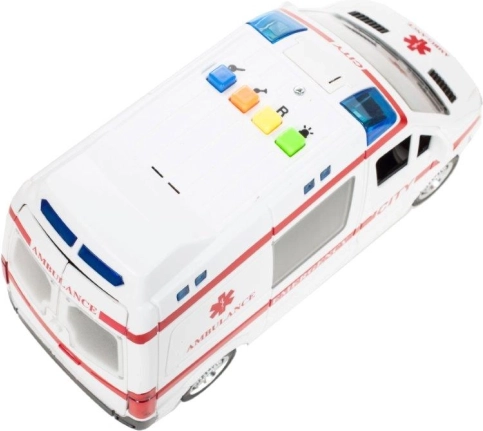 Realistyczna dziecięca karetka w skali 1:16 zapewnia dzieciom autentyczne wrażenia z akcji ratunkowej. Po naciśnięciu przycisków na dachu zapalają się światła ostrzegawcze i rozbrzmiewają dźwięki silnika, syreny oraz klaksonu, dzięki czemu zabawa jest jeszcze bardziej emocjonująca.