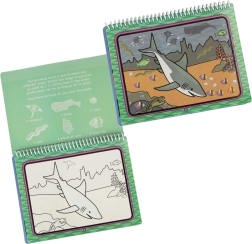 Po wyschnięciu kolory znikają i dziecko może malować od nowa. Książeczka zawiera 4 podwodne sceny pełne detali.