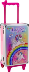 - Duża walizka z grafiką jednorożca; zestaw bezpiecznych dziecięcych kosmetyków i akcesoriów