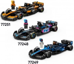 Model oferuje otwieranie kokpitu przez podniesienie halo, tylne skrzydło, zawieszenie typu wishbone oraz toczące się koła z szerszymi tylnymi oponami z napisem Pirelli. Minifigurkę kierowcy w kombinezonie zespołu i kasku łatwo posadzisz w kokpicie i możesz ruszać po zwycięstwo.