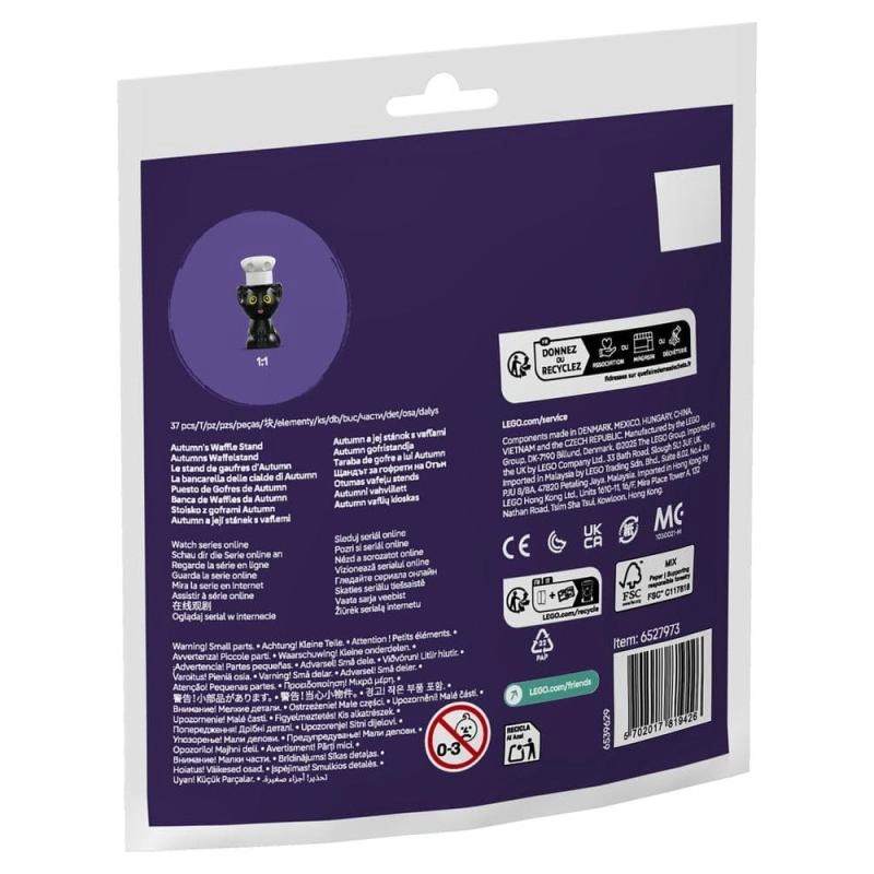 Dzięki modułowej konstrukcji stoisko można łatwo przebudowywać, rozbudowywać i łączyć z innymi zestawami LEGO Friends. Kompaktowe wymiary są idealne w podróży i do szybkiej zabawy w domu – a uroczy kotek w czapce doda każdej scence odrobiny humoru.