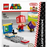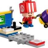 Wejdź do świata Mario Kart z tym świetnym zestawem klocków, który zawiera figurkę Toada, stanowisko robocze, oponę do kartingu, wózek z kołami oraz narzędzia.