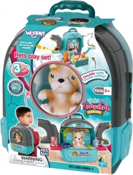 Odkryj kreatywny świat opieki nad zwierzętami z przenośnym zestawem WOOPIE 3w1. Praktyczny plecak po otwarciu zamienia się w pełnoprawną klinikę weterynaryjną z domkiem i ogródkiem, w której dzieci mogą badać, leczyć i rozpieszczać swoje pieski. Dzięki bogatym akcesoriom zabawa jest wciągająca, realistyczna i edukacyjna.