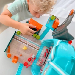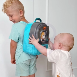 Lekka przenośna walizka/plecak po otwarciu zmienia się w przestrzeń do zabawy z domkiem i ogródkiem. Dzieci mogą bawić się wszędzie, a wszystko mają przejrzyście w jednym miejscu.