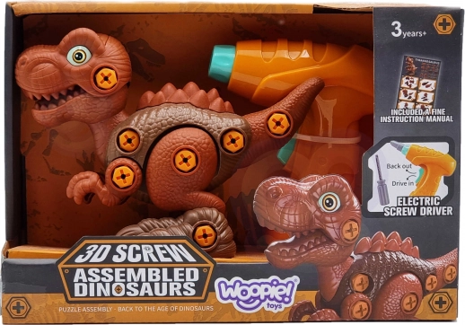 Zbuduj własnego dinozaura! Interaktywny zestaw WOOPIE zawiera 31 elementów, w tym dziecięcy śrubokręt oraz elektryczną wiertarkę z biegiem w obie strony do wkręcania i wykręcania. Po złożeniu T‑Rex ma ruchomą głowę, ogon i kończyny, rozwija małą motorykę, kreatywność i wyobraźnię małych majsterkowiczów.