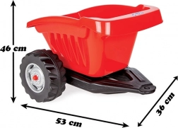 Przyczepa jest kompatybilna z traktorami na pedały i pojazdami WOOPIE (np. GoTrac, MaxTrac), a dzięki bardzo cichym kołom z antypoślizgiem jazda jest stabilna i komfortowa. Odchylana skrzynia ładunkowa wspiera motorykę i wyobraźnię – ładuj, wieź i wysypuj tyle razy, ile chcesz.