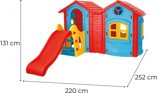 - 2 domki + zjeżdżalnia: więcej możliwości zabawy na małej przestrzeni
