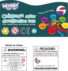 Ten kolorowy zestaw montessori oferuje prostą, a zarazem bardzo skuteczną formę nauki. Dzieci wysypują figurki na stół i za pomocą pęsety przyporządkowują je do miseczek według koloru, rozwijając koordynację oko–ręka, koncentrację i logiczne myślenie. Gumowe figurki są przyjemne w dotyku i bezpieczne dla małych rączek.