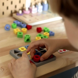 Zestaw zawiera różnorodne kolorowe kształty geometryczne dla bardziej zróżnicowanego doświadczenia.