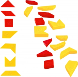 - - Zestaw zawiera: etui, planszę, 12 kolorowych elementów, 55 kart ze wzorami.