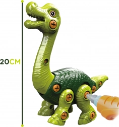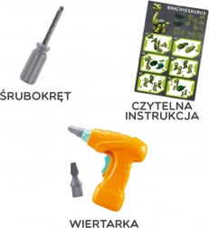 Dinozaur Brachiozaur od znanej marki WOOPIE przeniesie Cię do czasów, gdy po Ziemi chodziły te fascynujące istoty. Zabawka została zaprojektowana, aby rozwijać umiejętności manualne i kreatywność Twojego dziecka, co wspiera ich drobna motoryka. Zestaw zawiera 28 plastikowych elementów, które Twoje dziecko złoży za pomocą funkcjonalnego śrubokręta lub elektrycznej wiertarki z dwukierunkowym obracaniem, umożliwiającym wkręcanie i wykręcanie.