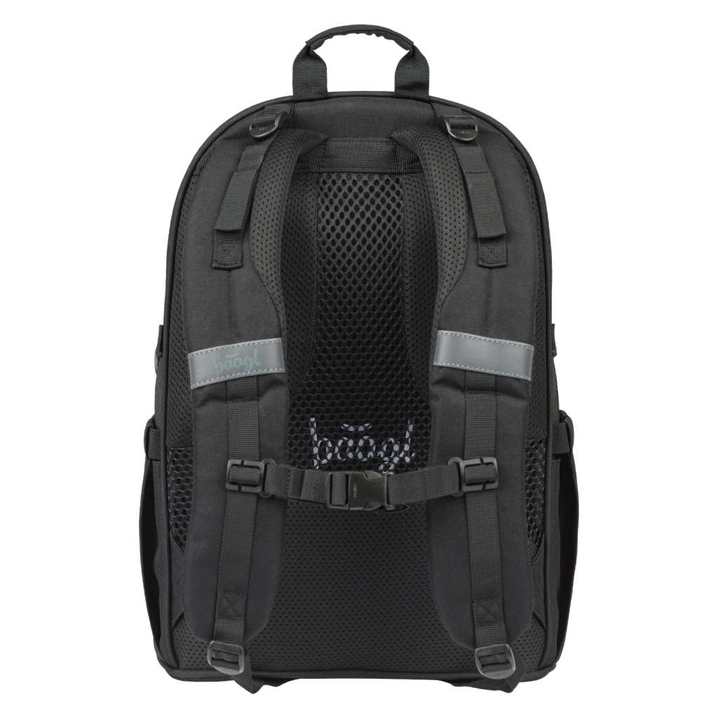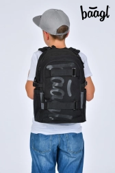 Lekki i wytrzymały plecak szkolny BAAGL Skate Uni w eleganckim czarnym kolorze jest idealny dla uczniów od trzeciej klasy. Oferuje anatomicznie ukształtowane plecy, 3 pojemne komory, wyściełaną kieszeń na laptop 15" oraz praktyczne paski do mocowania deskorolki. Wykonany z recyklowanego, wodoodpornego materiału z elementami odblaskowymi dla maksymalnego bezpieczeństwa oraz wyposażony w niezawodne zamki YKK.