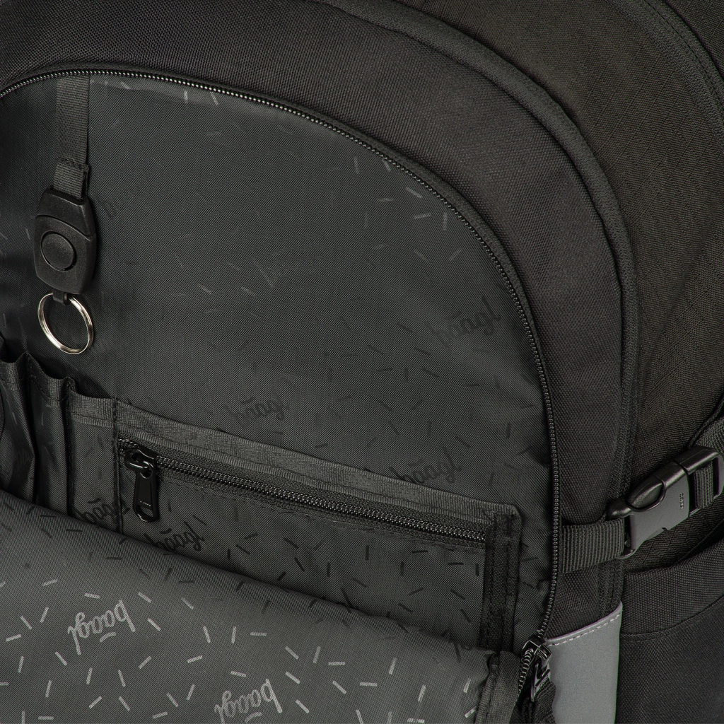 Trzy oddzielnie zamykane komory z wewnętrznym organizerem i wyściełaną kieszenią bezpiecznie pomieszczą podręczniki, zeszyty oraz elektronikę – wszystko pozostanie przejrzyście na swoim miejscu.