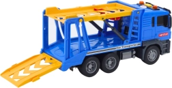 Realistyczna laweta-autotransporter z samochodem osobowym zapewni dzieciom godziny kreatywnej zabawy. Ma ruchomą rampę najazdową, świetlne koguty i efekty dźwiękowe (klakson, silnik, cofanie), a w zestawie znajdziesz także czerwony samochód sportowy oraz baterie, więc jest gotowa do zabawy od razu po wyjęciu z opakowania.