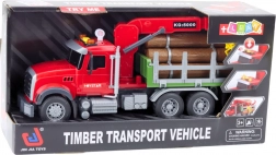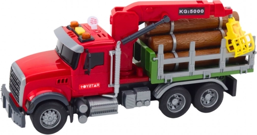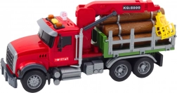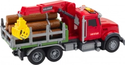 Ten czerwony leśny samochód ciężarowy jest gotowy do załadunku i transportu drewna. Tylna przyczepa z ruchomym żurawiem i chwytakiem umożliwia łatwe podnoszenie i przenoszenie kłód, które są częścią zestawu. Sterowanie ramieniem żurawia odbywa się przyciskami na pojeździe, dzięki czemu dzieci cieszą się realistyczną i bezpieczną zabawą.