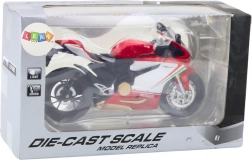 Ten czerwono‑biały model inspirowany motocyklami wyścigowymi ucieszy dzieci, kolekcjonerów i fanów motoryzacji. Precyzyjne wykonanie, solidna metalowa karoseria oraz funkcjonalne elementy czynią z niego atrakcyjny dodatek do kolekcji i efektowną dekorację.