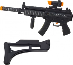 Spraw radość małym miłośnikom gier akcji. Ten dziecięcy pistolet maszynowy idealnie nadaje się do zabawy w żołnierzy, specjalne misje oraz potyczki na świeżym powietrzu. Po naciśnięciu spustu uruchamia światła LED i realistyczne efekty dźwiękowe, które potęgują atmosferę i wciągają dzieci do zabawy.