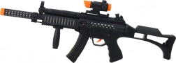 Model wyróżnia się nowoczesnym taktycznym wyglądem i przemyślaną konstrukcją. Zdejmowana kolba pozwala dopasować długość zabawki do stylu gry, muszka i szczerbinka ułatwiają celowanie, a ergonomiczny uchwyt zapewnia wygodne trzymanie nawet podczas dłuższej zabawy. Dzięki zasilaniu popularnymi bateriami AA sprawdzi się zarówno w domu, jak i na podwórku czy placu zabaw.