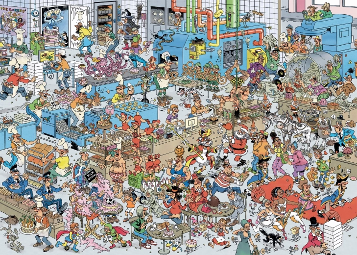 Wejdź do tętniącego życiem świata piekarni z legendarnej serii JAN VAN HAASTEREN. Każda scena jest pełna humoru i nieoczekiwanych sytuacji – szukaj ikonicznych motywów, takich jak płetwa rekina, wędrujące ręce, proteza zębowa, Święty Mikołaj, a nawet autoportret autora. Dzięki precyzyjnemu drukowi i nasyconym kolorom układanie to przyjemność od pierwszego do ostatniego elementu.