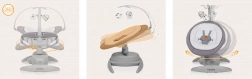 - Usypianie i zabawa: 5 prędkości kołysania, 14 melodii, odpinany pałąk z zabawkami