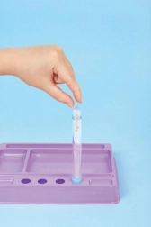 Z tym kreatywnym zestawem dzieci wykonają aż trzy oryginalne pływające długopisy, w których podczas pisania elegancko unoszą się brokat i tematyczne ikonki. Dzięki dołączonemu lejkowi i tacy roboczej napełnianie jest proste i czyste. Woda nie jest częścią zestawu.
