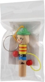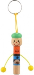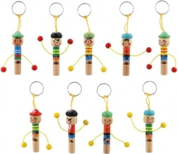 Urocza drewniana zawieszka w kształcie ludzika z wbudowanym gwizdkiem o długości 8 cm to stylowy i praktyczny dodatek. Dzięki pętelce łatwo przypniesz ją do kluczy, plecaka lub piórnika. Wyróżnia się wesołymi kolorami i zabawnym designem, więc ucieszy zarówno dzieci, jak i dorosłych. Wybierz z miksu wzorów i ciesz się lekką i trwałą drewnianą konstrukcją oraz praktycznym gwizdkiem zawsze pod ręką.