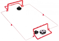 Dwie bramki, paletki i sznurek do wyznaczenia boiska zamienią każdy stół w arenę do szybkich meczów air hockeya/piłki nożnej.