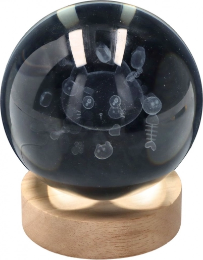 Ta elegancka kryształowa kula z subtelnym motywem kota tworzy przyjemne, ambientowe światło i staje się wyrazistym elementem designu w każdym wnętrzu. Dzięki niskiemu zużyciu energii 1,5 W świeci oszczędnie i cicho, idealnie do wyciszenia atmosfery wieczorem lub przed snem.