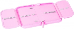 Piórnik jest wyposażony w mocne gumki i przestronne przegródki do łatwej orientacji i jest wykonany z recyklingowanego materiału. Worek można przypiąć do tornistra za pomocą karabińczyka i jest idealny na obuwie lub inne drobiazgi.