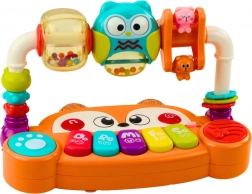 Pianinko zawiera obracającą się sowę z kuleczkami w środku, a także zawieszki do przesuwania i obracania, które wspierają rozwój małej motoryki, koordynacji ręka-oko oraz umiejętności manualnych. Różne faktury i kolory stymulują ciekawość i zachęcają do samodzielnego odkrywania.