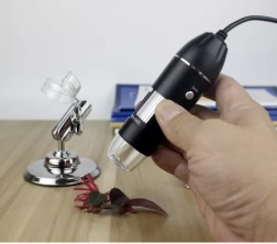 Cyfrowy mikroskop umożliwia wyjątkowe, 1600-krotne powiększenie do szczegółowego oglądania próbek, takich jak owady, tkanki czy struktury materiałów.