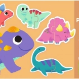 Zrób z układania puzzli interaktywne doświadczenie dla swojego dziecka. Ta układanka składa się z dziesięciu dwuczęściowych konturowych puzzli, które zabawnie przedstawiają różne gatunki dinozaurów.