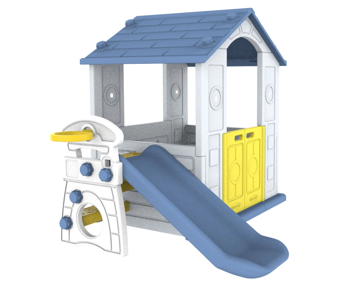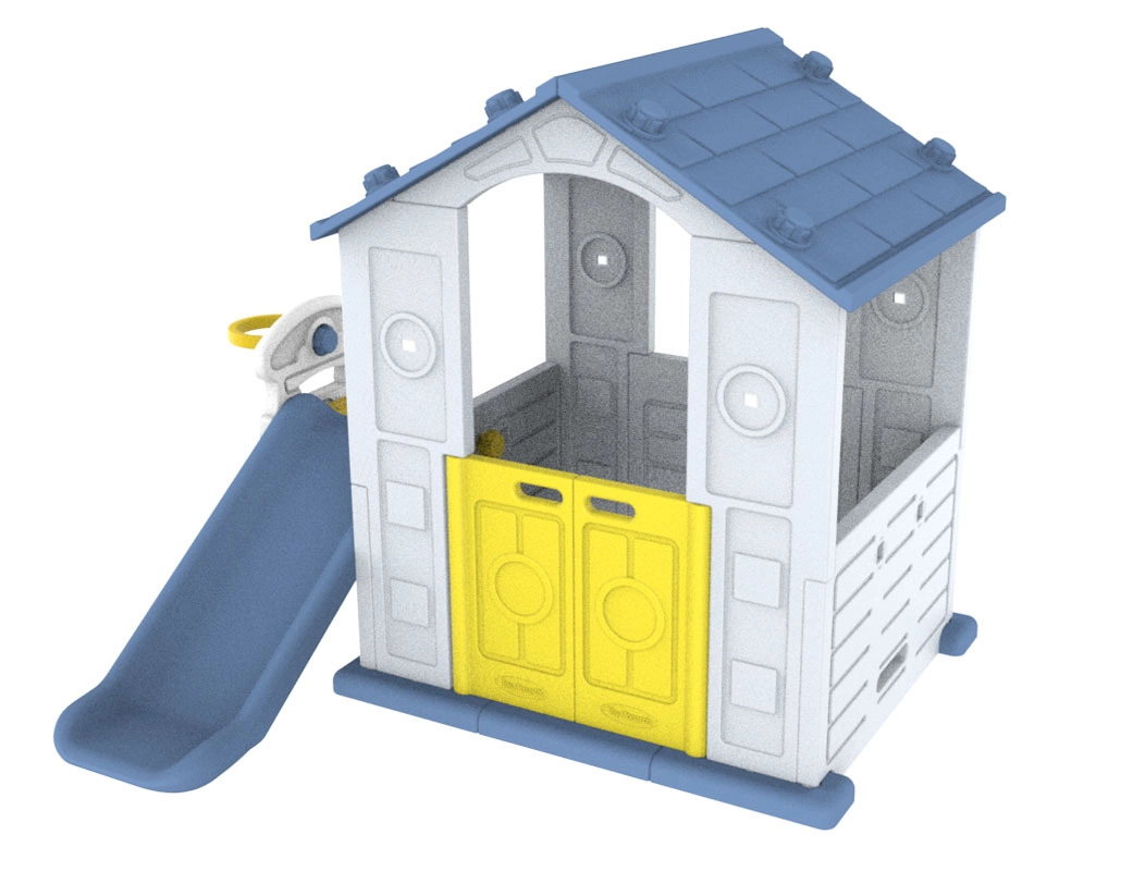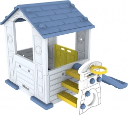 Dziecięcy domek ogrodowy oferuje przestronne miejsce do zabawy ze zjeżdżalnią i zestawem do koszykówki. Wykonany z wysokiej jakości materiału HDPE, który zapewnia trwałość i stabilność.