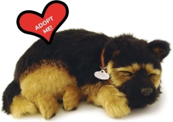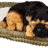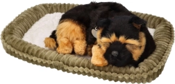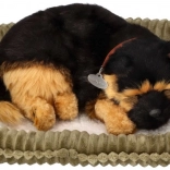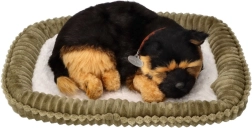 Podaruj dzieciom lub sobie kojącego towarzysza: to szczenię owczarka niemieckiego delikatnie „oddycha” i spokojnie odpoczywa na swoim miękkim legowisku. Realistyczne detale, kontrastowa czarno-brązowa sierść i urocza pozycja spania czynią z niego idealny prezent dla miłośników psów.