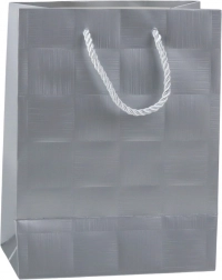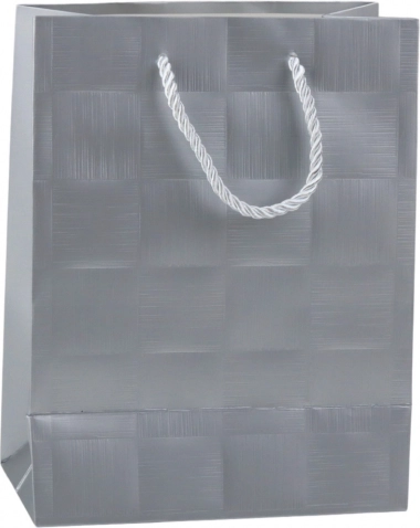 Elegancka torebka prezentowa ze strukturalnym wzorem kwadratów i mocnymi, sznurkowymi uchwytami jest idealna na każdą okazję. Dzięki zwiększonej gramaturze papieru jest wytrzymała, stylowa i wygodnie przeniesie średniej wielkości prezenty – książki, kosmetyki, odzież czy zabawki.