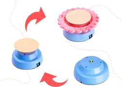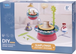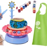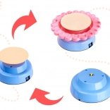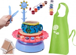 Zestaw zawiera atrakcyjnie kolorowe koło garncarskie, przeznaczone do modelowania gliny i zdobienia.