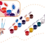 Zestaw zawiera barwne farby i pędzle do ozdabiania twoich dzieł, wspierając estetyczne myślenie dzieci.