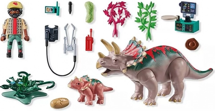 Wyrusz w podróż do prehistorii z rodziną triceratopsów. Realistyczne figurki dinozaura i młodego, figurka badacza oraz szczegółowe dodatki (rośliny, jaja, narzędzia badawcze) pozwalają dzieciom tworzyć własne opowieści, obserwować zachowania dinozaurów i uczyć się poprzez zabawę. W zestawie znajduje się również karta wiedzy o dinozaurach z jeszcze większą porcją ciekawostek.