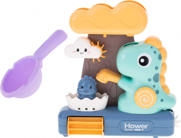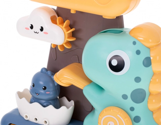 Dziecięca zabawka kąpielowa z dinozaurami i kółkiem wodnym to świetny sposób na urozmaicenie kąpieli malucha. Zabawa polega na wlewaniu wody do górnego pojemnika w kształcie dużej chmury, skąd woda swobodnie przepływa przez wszystkie części zabawki, zapewniając dzieciom wizualną frajdę.<p>