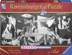 Puzzle Ravensburger Guernica to wspaniała układanka z 2000 elementów, która przeniesie Cię do świata sztuki Pabla Picassa. Idealna dla miłośników sztuki, którzy chcą cieszyć się szczegółową reprodukcją tego arcydzieła.